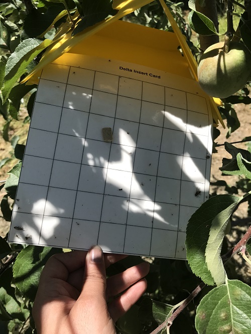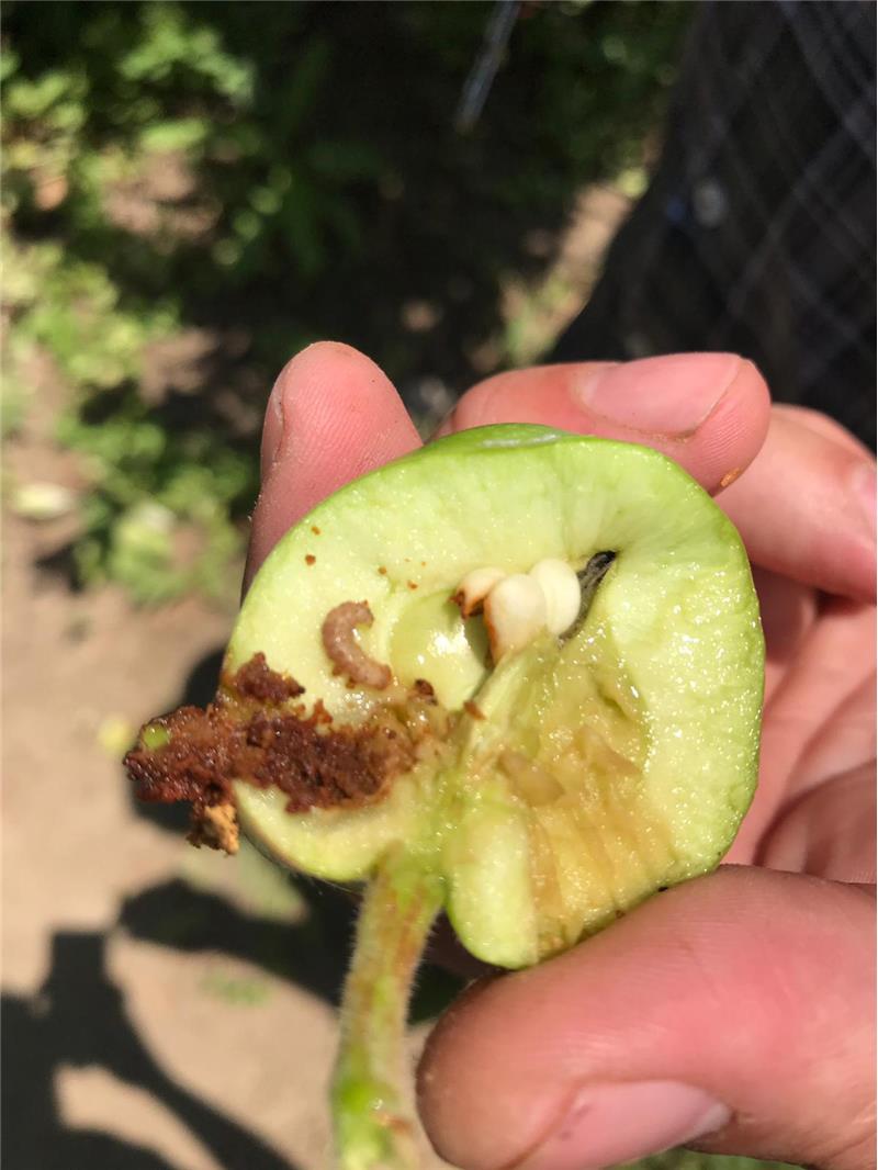 ELMA İÇKURDU (Cydia pomonella) TANINMASI, ZARAR ŞEKLİ VE MÜCADELESİ Tanımı ve Yaşayışı: Ergin gri renkli yaklaşık 10mm uzunluğunda, her iki kanat ucunda üçgen şeklinde çikolata renginde leke bulunur. Yumurta 1–1,2 mm çapında oval şekilde, başlangıçta süt beyazı renginde ve mumumsu görünümdedir. Yumurta geliştikçe orta kısmında kırmızımsı bir halka görülür, açılmadan hemen önce ise gelişmiş larva açıklıkla izlenebilir. Gelişimini tamamlayıp elmayı terk eden olgun larva 15–20mm uzunluğunda beyazımsı pembe görünümündedir. Erginin yumurta bırakması için akşam alacakaranlık sıcaklığının üst üste iki gün 15°C'nin üzerinde olması gerekmektedir. Zarar şekli: Doğrudan meyvede zarar yapan larvalar, meyveleri delerek içlerinde galeriler açmakta, etli kısmını ve çekirdek evini yiyerek pislikler bırakmaktadır. Zararlı olduğu bitkiler: Başta elma, armut, ayva, cevizde zararlıdır. Bunların yanı sıra erik,kayısı ve şeftalide de görülebilir.