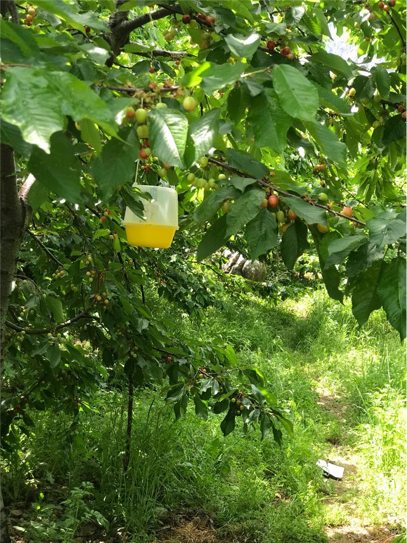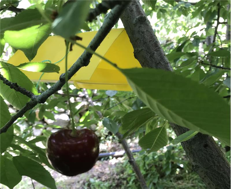 Bu zararlı, kiraz ve vişnede zarar yapar. Yabani kiraz ve bazı Lonicera türleri de konukçusudur.