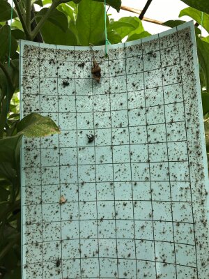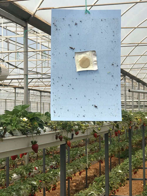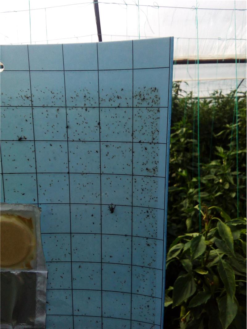 Dekar başına 100-120 adet mavi yapışkan tuzak asılması tavsiye edilir. Burada mücadeleye başlama zamanı çok önemlidir. Bitkilerin dikimiyle birlikte veya dikimden hemen önce ortama belirtilen sayıda tuzak yerleştirilmelidir.