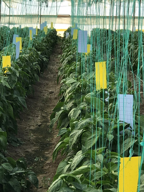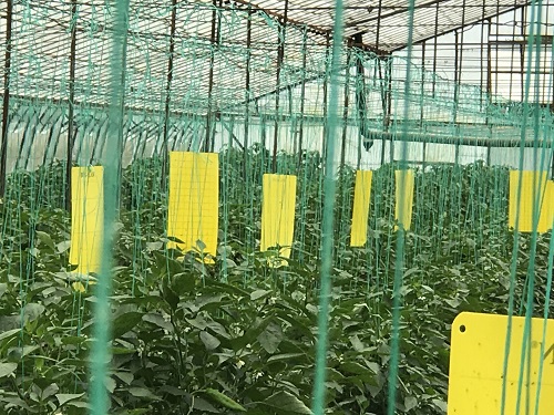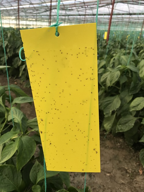 Dekar başına 100-120 adet sarı yapışkan tuzak asılması tavsiye edilir. Burada mücadeleye başlama zamanı çok önemlidir. Bitkilerin dikimiyle birlikte veya dikimden hemen önce ortama belirtilen sayıda tuzak yerleştirilmelidir. Tuzakların böceklerle dolup dolmadığı belli aralıklarla kontrol edilmelidir. Böcekle kaplanmış ve bu nedenle yapışkan alanı azalan tuzaklar yenileriyle değiştirilmelidir. Bu uygulama, üretim periyodu boyunca devam ettirilmelidir.